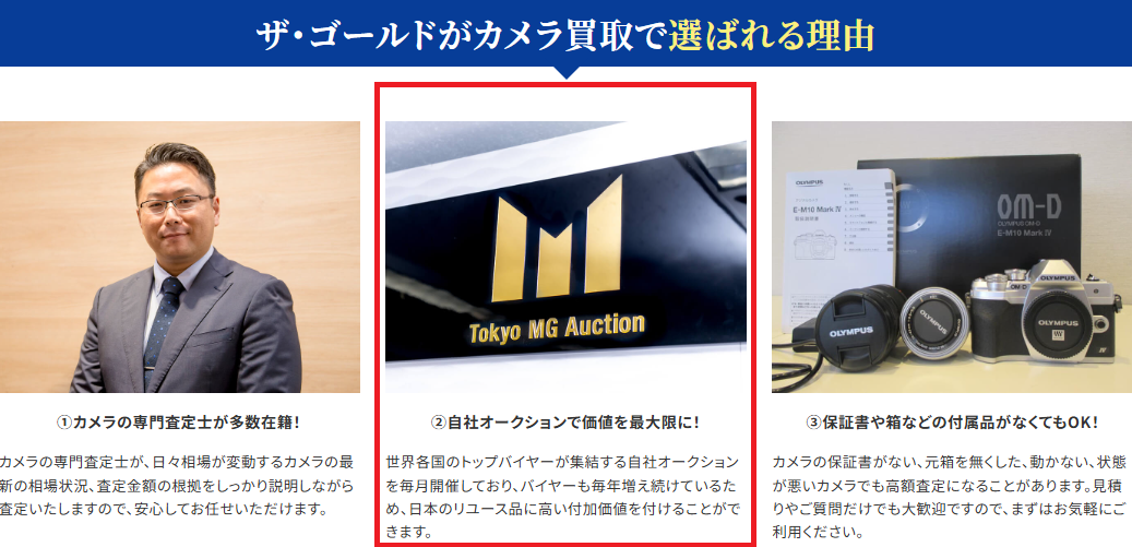 世界各国のトップバイヤーが集結する自社オークションを毎月開催してることにより、高価買取を実現しているのです。