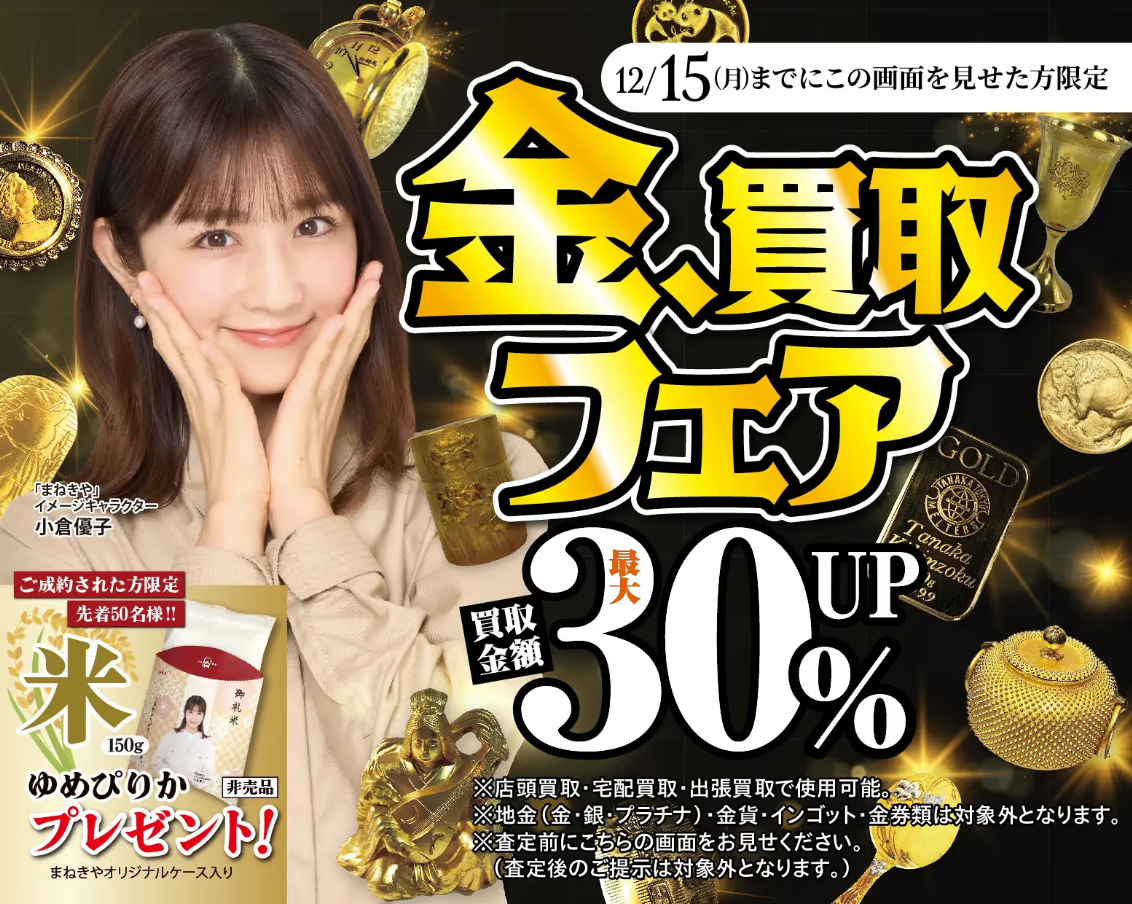 まねきやは、創業から約20年続く総合買取業者で小倉優子さんがイメージキャラクターに就任しています。