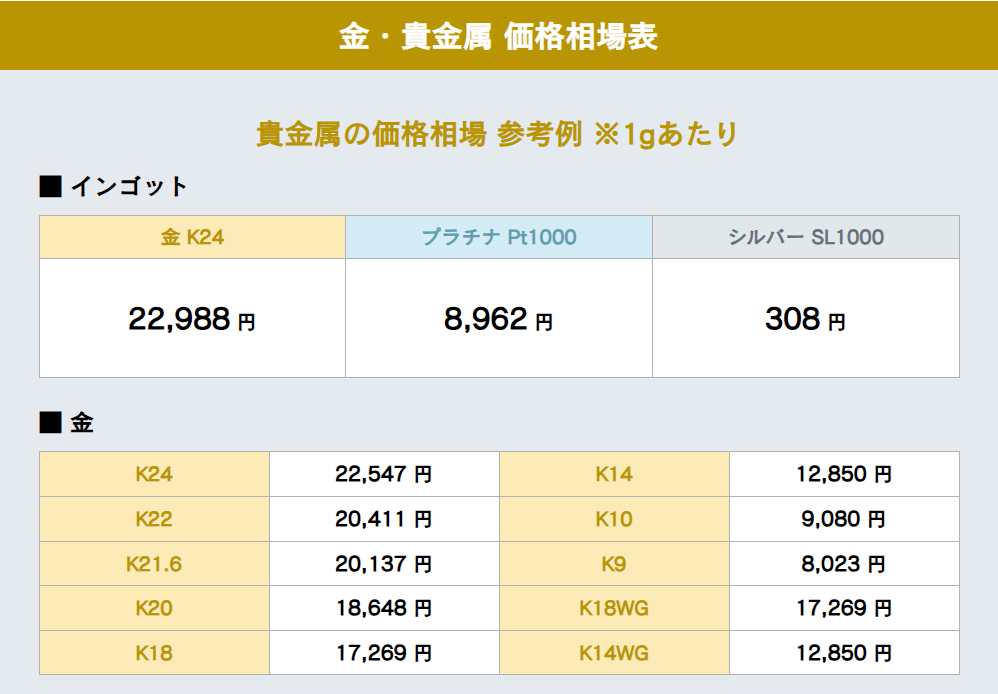 もう一つ、買取価格に差が出る部分は”貴金属の単価”です。