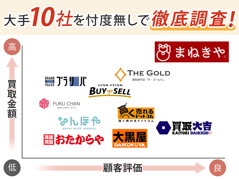まねきやがおすすめ!今回の調査で10社中買取金額1位を獲得したので高価買取の実現はまず間違いなし!